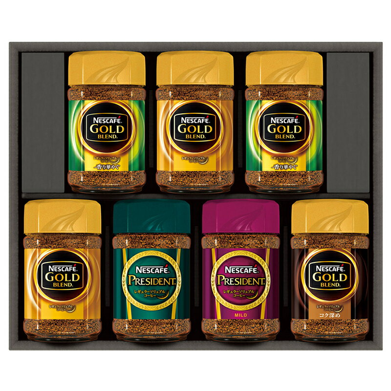 商品情報商品名ネスカフェ プレミアム レギュラーソリュブルコーヒー ギフトセットブランド名ネスレ内容ネスカフェゴールドブレンド65g×2、ネスカフェゴールドブレンド香り華やぐ65g×2、ネスカフェゴールドブレンドコク深め65g×1、ネスカフェプレジデント65g×1、ネスカフェプレジデントマイルド65g×1賞味期間製造後720日箱サイズ26.5×32.0×7.4cm【数量限定】ネスカフェ プレミアム レギュラーソリュブルコーヒー ギフトセット N50-S 送料無料 ゴールドブレンド プレジデント ネスレ ギフト 彼岸 内祝 快気祝 御礼 御供 粗供養 香典返し お中元 お歳暮 お年賀 人気のネスカフェのコーヒーセット!ゴールドブレンドとプレジデントのみの贅沢なギフトセットです。