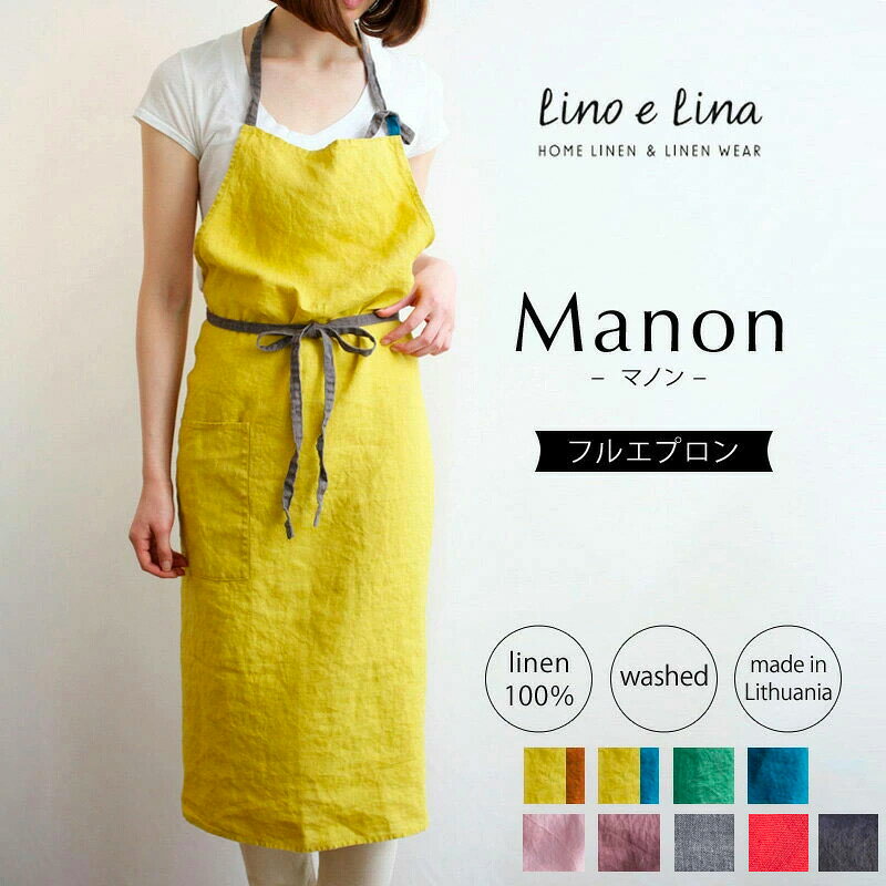 Lino e Lina エプロン リネン マノン 刺繍対応エプロンおうちオンライン化 エンジョイホーム インテリアコーディネート