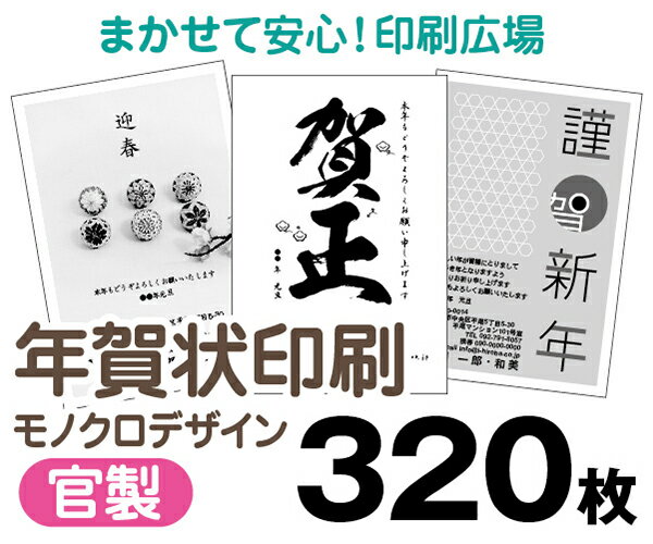 【年賀状印刷】【2020年子】【320枚】【年賀はがき】【モノクロ】【レターパックライト無料】