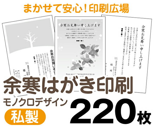 【余寒はがき印刷】【220枚】【私製はがき】【モノクロ】【レターパックライト無料】